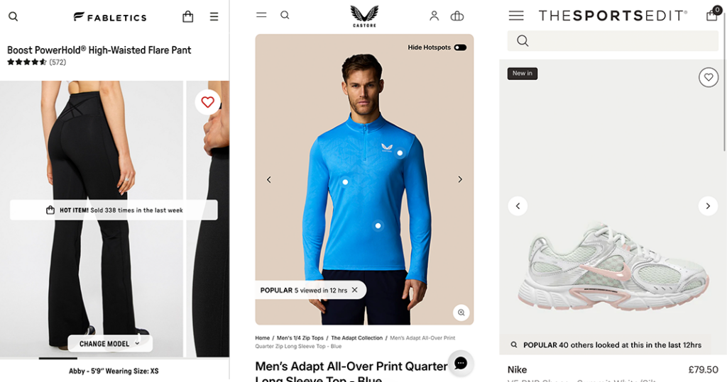 Social Proof Messaging can be integrated across your online presence – from your PDP to your email and social media – and is perfect for highlighting popular and recommended athleisure and activewear products that give your shoppers added confidence to buy.