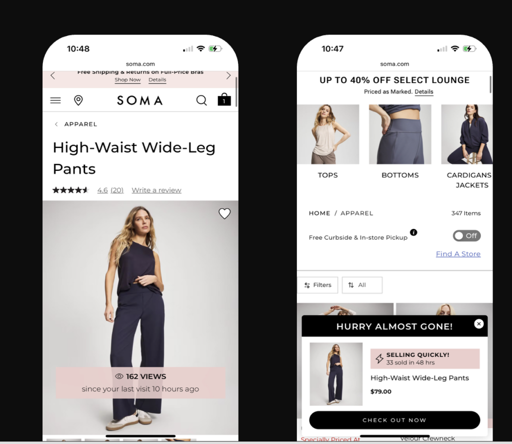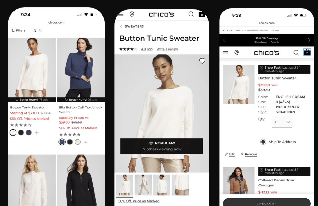 When implemented thoughtfully, these messages don’t compromise brand integrity or push discount behaviour. Instead, they help shoppers move from consideration to checkout. For Knitwell brands, including Talbots, Chicos, and Soma, this translated into higher conversions, stronger checkout start rates, and improved full-price sell-through.