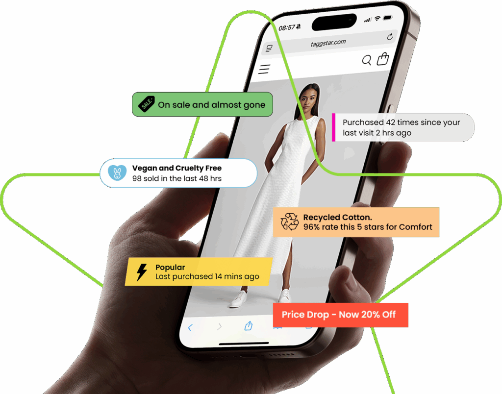 Taggstar elevates online shopping with real-time, data-driven messaging, helping shoppers make faster and more informed purchase decisions.