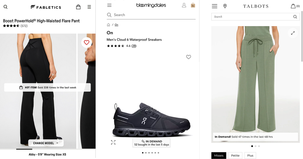 Social Proof Messaging can be integrated across your online presence – from your PDP to your email and social media – and is perfect for highlighting popular and recommended athleisure and activewear products that give your shoppers added confidence to buy.
