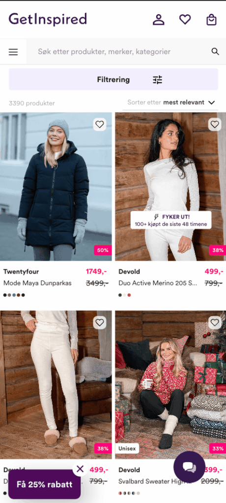 Since then, social proof messaging has been a key strategy for Getinspired.no to help customers buy with more confidence. However, the company wanted to further aid product discovery by providing customers with additional guidance and confidence at the beginning of the buying journey.