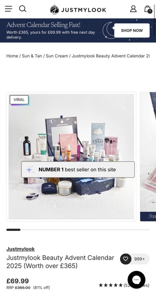 Justmylook launched its proof of concept with Taggstar on 29th August 2025. The test saw Taggstar’s social proof messaging introduced on Justmylook’s website across the UK and Ireland. Running for 19 days, the full funnel test included 13 messages, such as ‘All Eyes on This! X others are looking at this right now, ‘Snapped-up! Sold 100+ times recently’, and ‘New Fave! Sold 100+ times recently’.