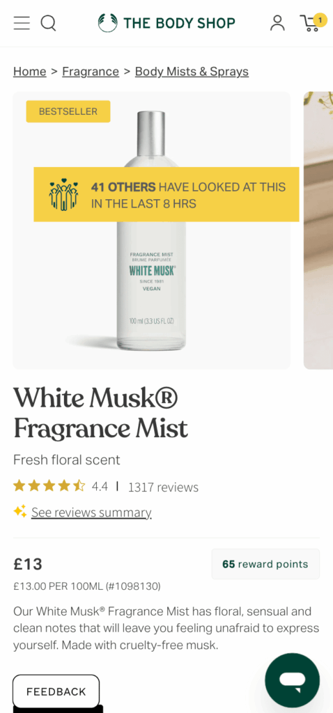 The success of the initial test led to the rollout of social proof messaging within the business. When The Body Shop redesigned and replatformed its website onto Shopify in January 2025, Taggstar was once again implemented as a key sales driver for the retailer.