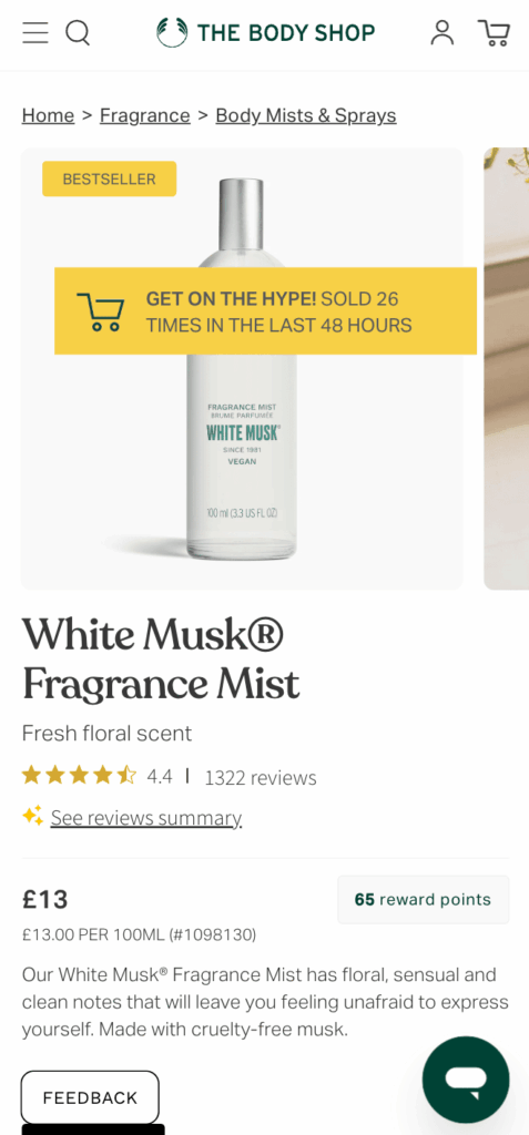 Buckingham says that Taggstar’s social proof messaging has been a powerful tool for The Body Shop, helping to drive conversion and sales, and to build confidence for customers. “Delivering customer-driven messaging into the eyes of the customer at the right place in the right point in their journey, whether that’s PLP, PDP or cart, is only going to drive conversion,” he says. “It works because it taps into the human psychology of ‘if everyone else is buying it, then it must be good and I should probably have it too’.”