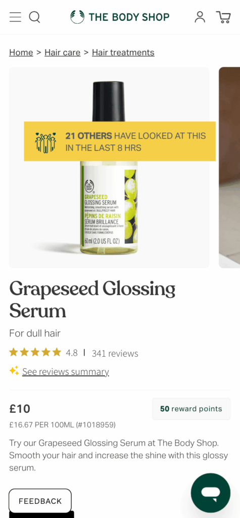 The Body Shop were working with an experimentation and personalization provider that also offered social proof, but wanted to drive conversion further and inspire purchase confidence in real-time by working with a specialist provider of social proof instead.